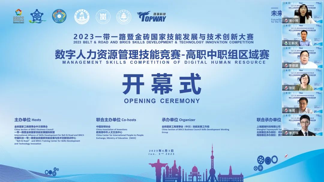 6月3日上午9時,2023一帶一路暨金磚國家技能發展與技術創新大賽數字人力資源管理技能賽項高職、中職組區域賽開幕式如約而至,一帶一路暨金磚國家技能發展國際聯盟副秘書長、金磚國家技能發展與技術創新大賽組委會國內競賽處主任宋小琴為大賽致辭。